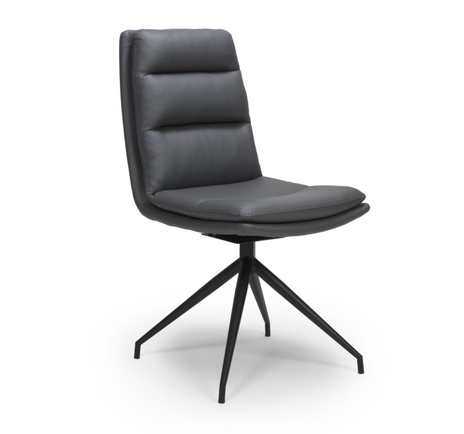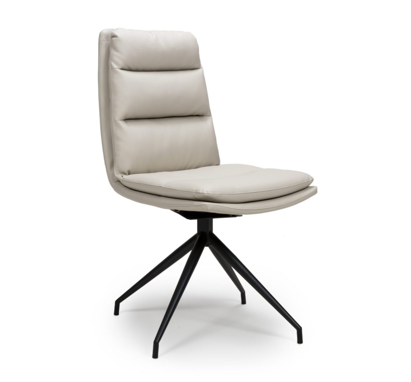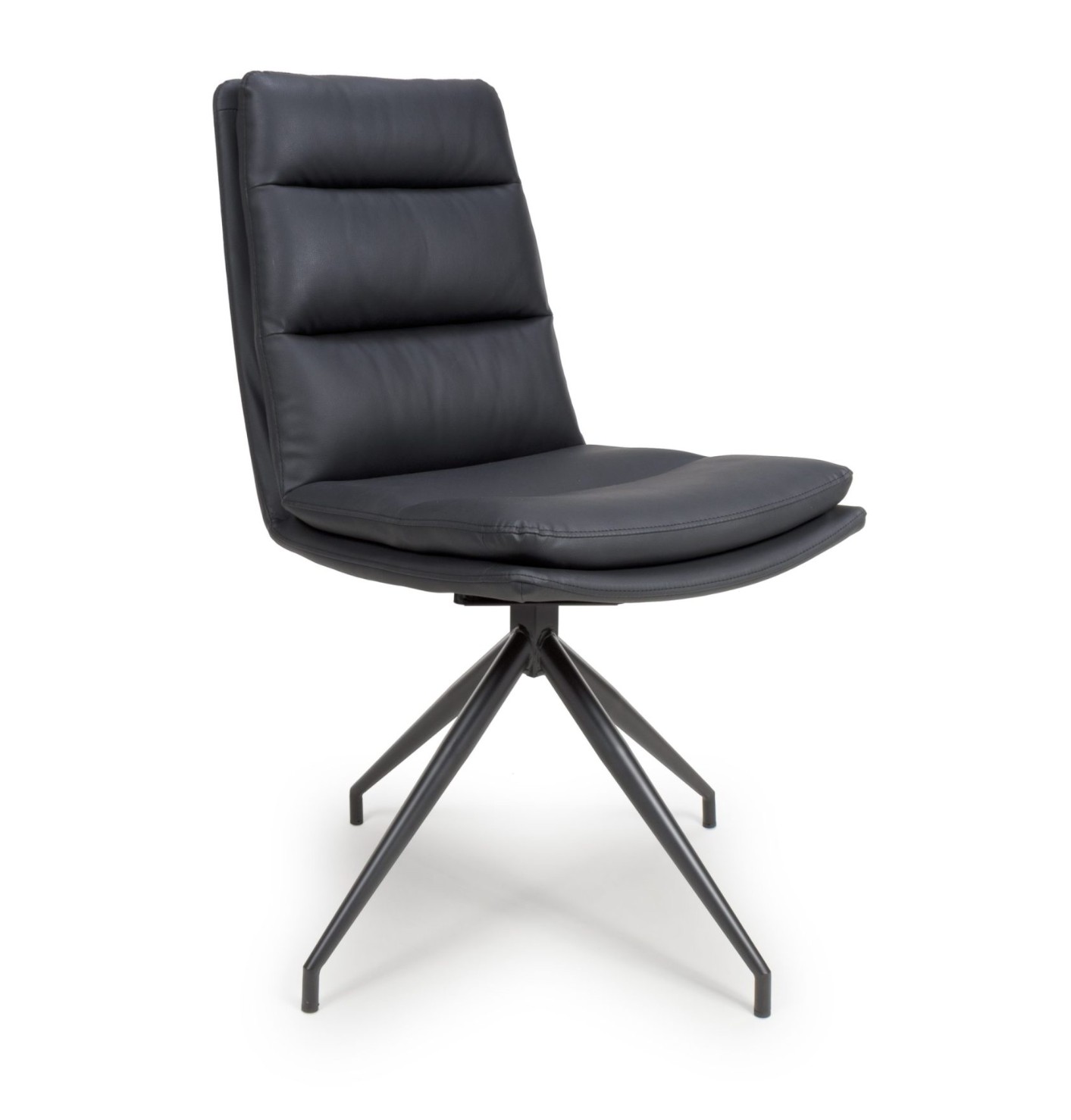The stunning swivel dining chair brings together exquisite comfort, design led style and functionality, This chair likes to be sociable, effortlessly cool and will add an edgy flair to any dining experience. It stands proud on its sunray base which is offered in black or brushed steel and comes in a choice of faux leather colours. Mix and match them or keep to one colour to take a simple table setting to the next level of trend led design.