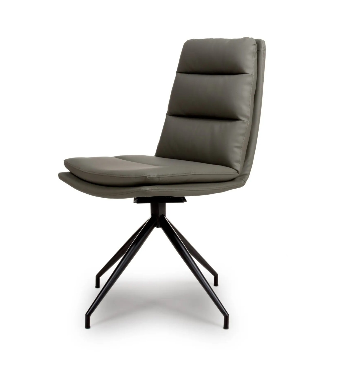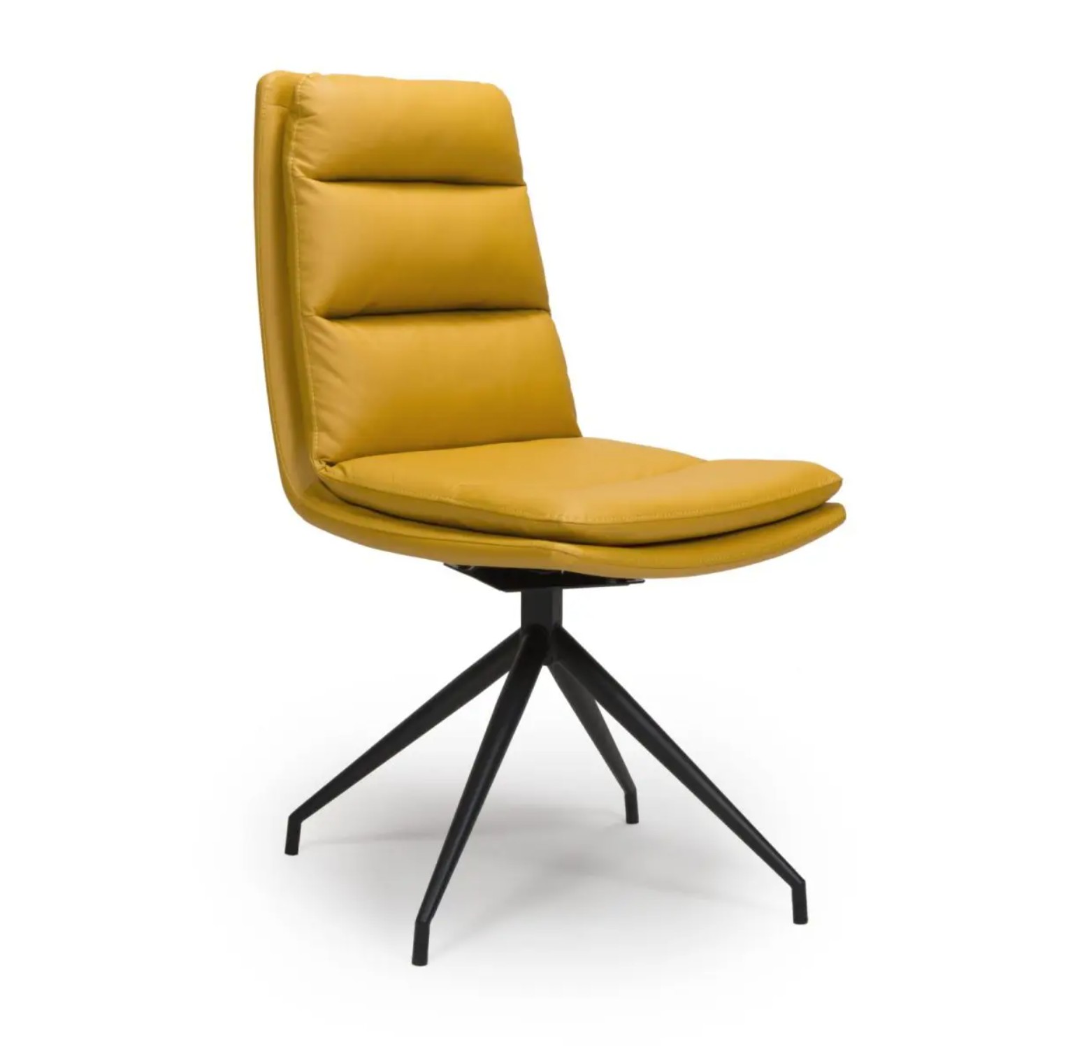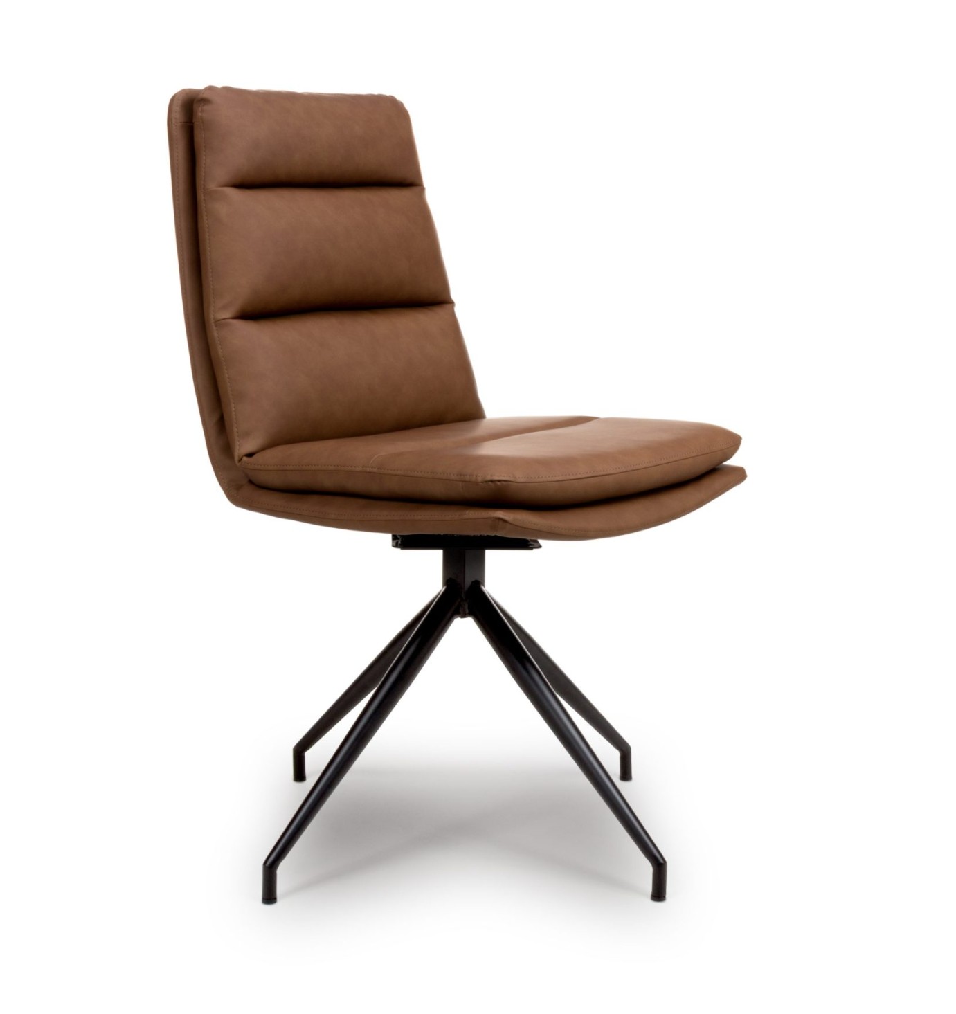 The stunning swivel dining chair brings together exquisite comfort, design led style and functionality, This chair likes to be sociable, effortlessly cool and will add an edgy flair to any dining experience. It stands proud on its sunray base which is offered in black or brushed steel and comes in a choice of faux leather colours. Mix and match them or keep to one colour to take a simple table setting to the next level of trend led design.